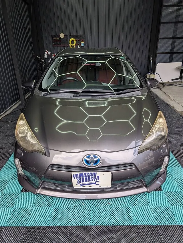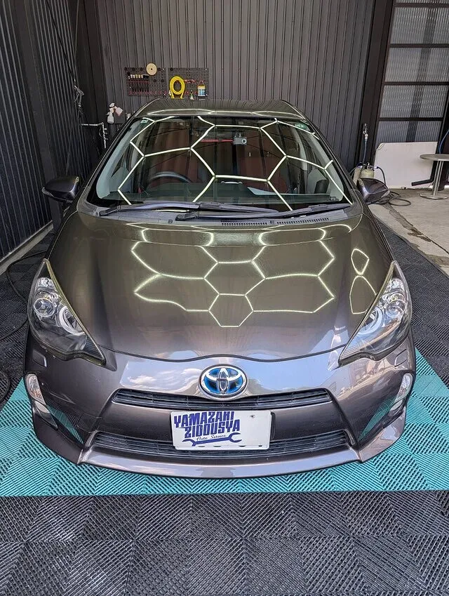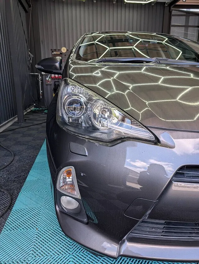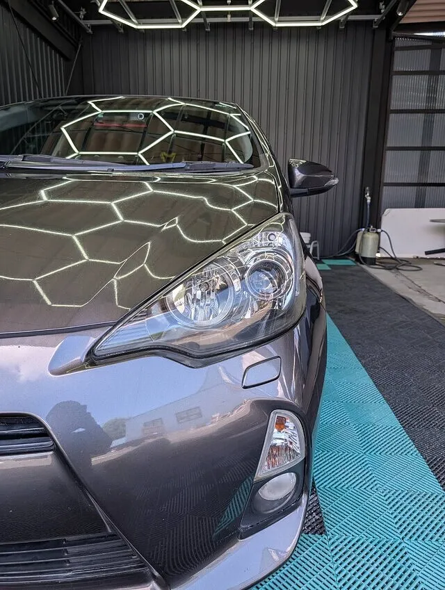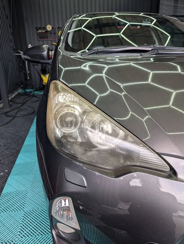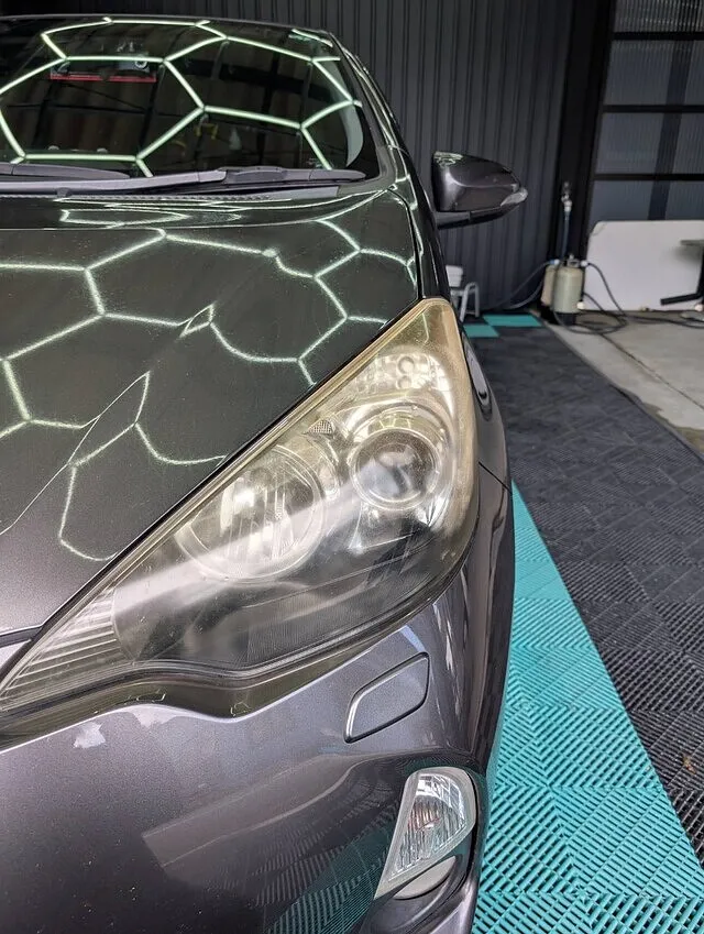 本日はヘッドライトクリーニングのご依頼でトヨタ アクアのご入庫です。